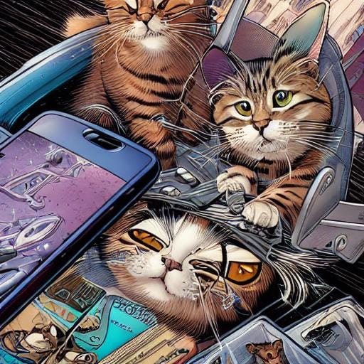 2 cats using instagram on a cellphone